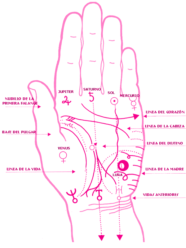Los quiromantes analizan escrupulosamente la palma de la mano, y una de las cosas que mas tienen en cuenta es ver bien los montes, relacionados cada uno con un planeta, y que estan en las terminaciones de los dedos.